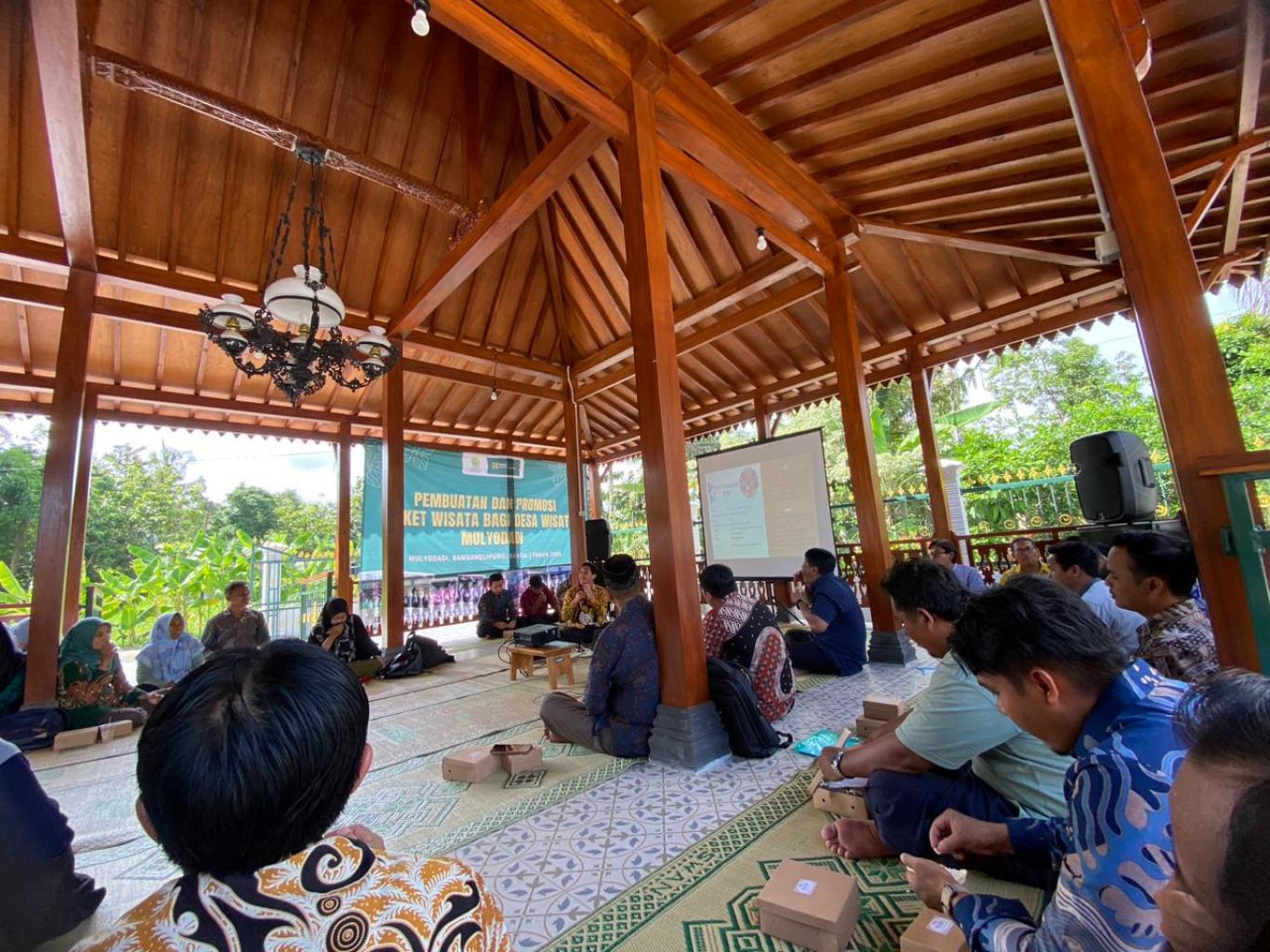 Pelaksanaan kegiatan difokuskan pada penyusunan materi promosi yang menampilkan destinasi, atraksi, budaya lokal, serta produk unggulan desa, disertai dengan perumusan paket wisata terpadu yang disesuaikan dengan karakteristik dan potensi desa wisata.