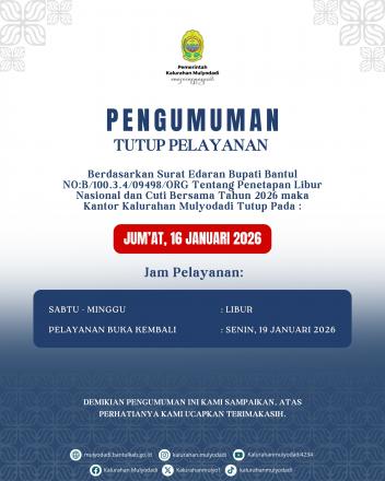 - Pengumuman Pelayanan di Kantor Kalurahan Mulyodadi
