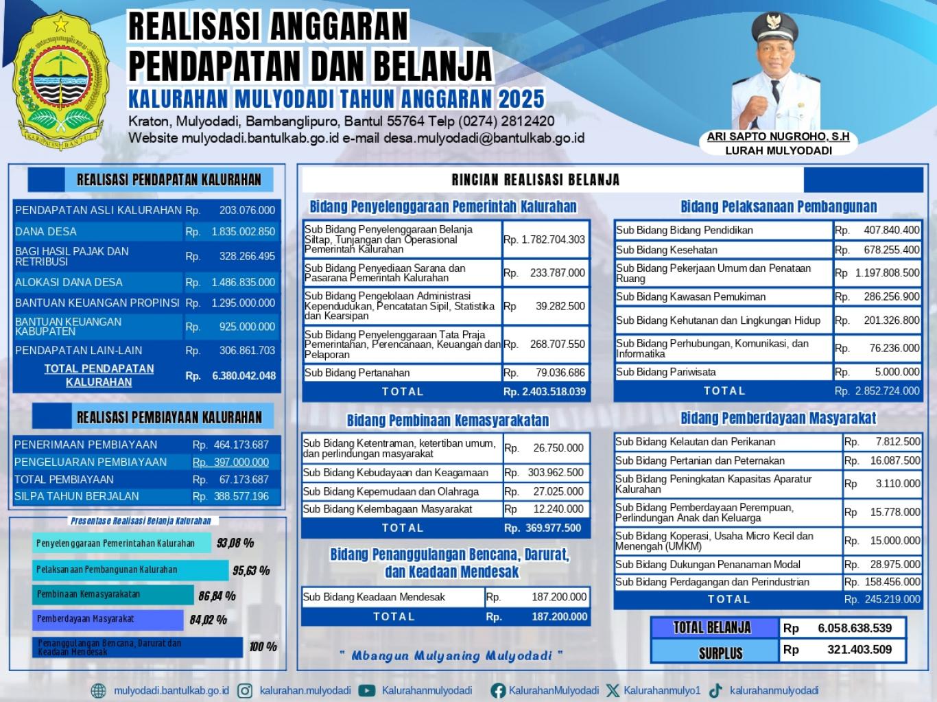 REALISASI PENDAPATAN DAN BELANJA KALURAHAN MULYODADI Tahun Anggaran 2025